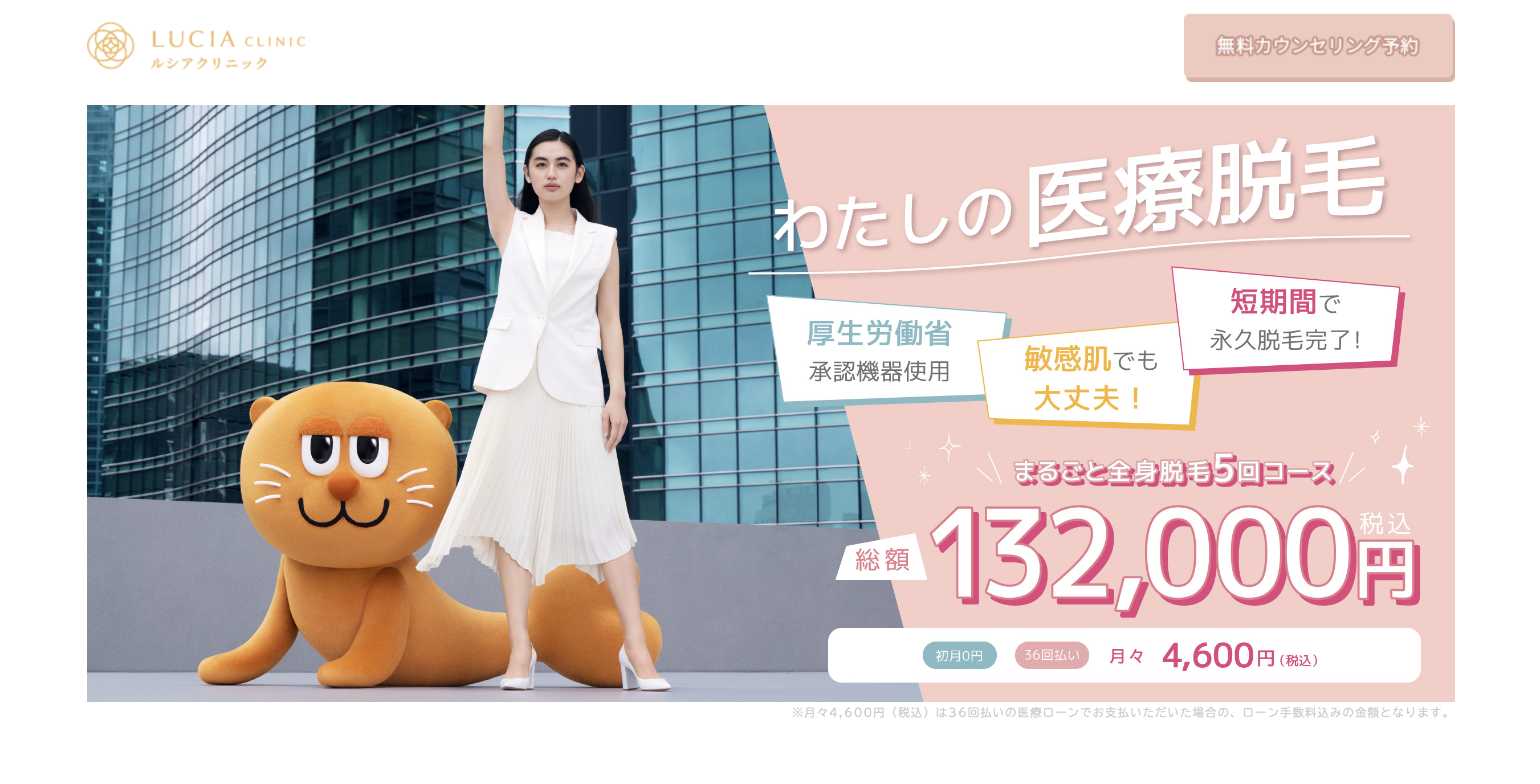 全身脱毛(顔+VIO) 総額132,000円
