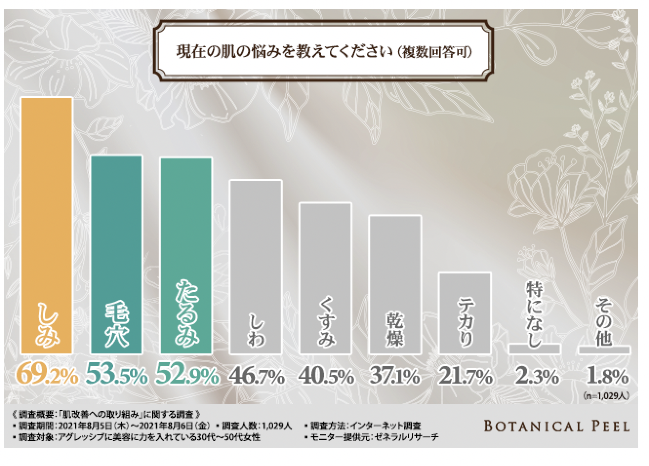 | 肌トラブル | シミやくすみ | ニキビやニキビ跡 | 毛穴の詰まり | シワ |