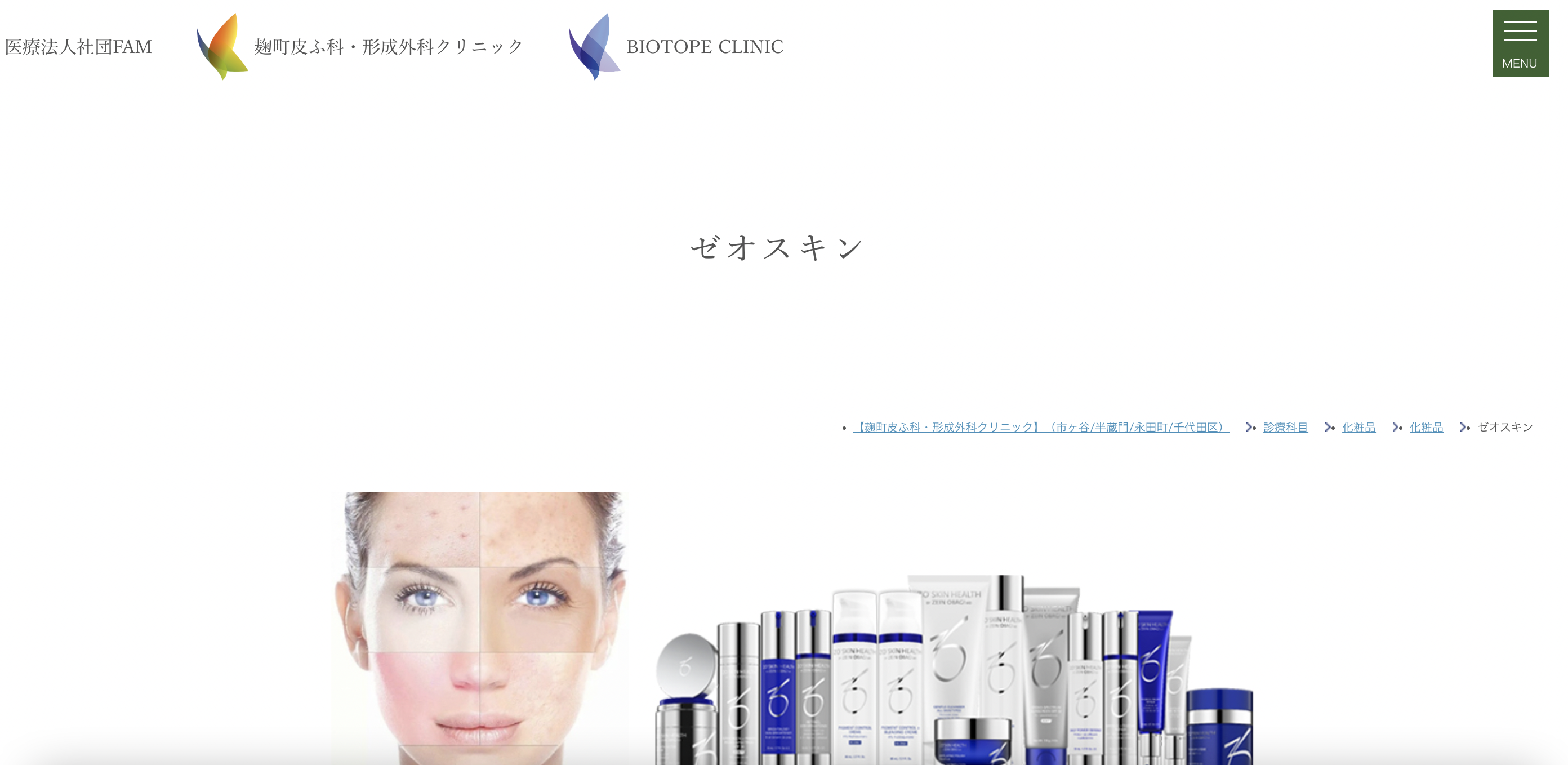 [box class=”box28″ title=”医療機関専売スキンケア”]ゼオスキンは、スキンケアの分野で世界的に高い評価を得てきたゼイン・オバジ先生が、35年以上にわたるシミ・しわ・ニキビ治療の研究を経て作った「医療機関専売のスキンケアブランド」です。 日々変化するお肌の状態に対して、専門医の指導のもと、日焼け止め、洗顔料、化粧水、美容液といったスキンケアプログラムを、患者様にとって効果的に組み合わせて、美しく健やかな肌を目指します。[/box]