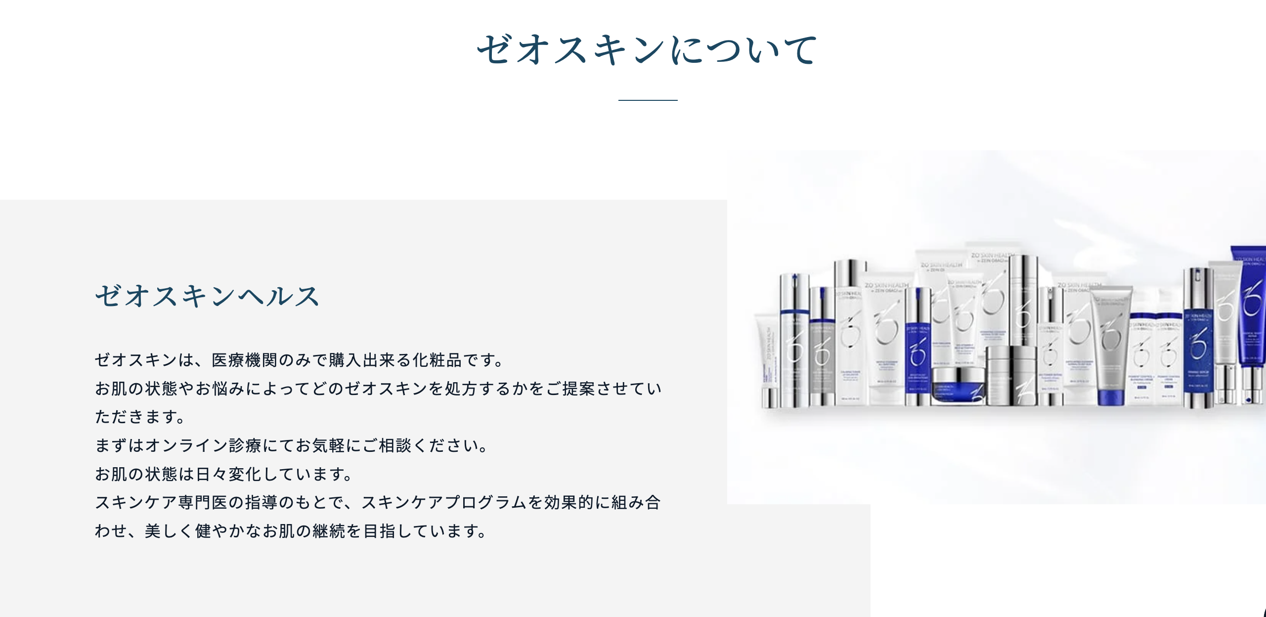 | おすすめな人 | 初診の前にYoutube動画で解説してくれている オンライン診療がいい ゼオスキンでは全国屈指、九州3位 |